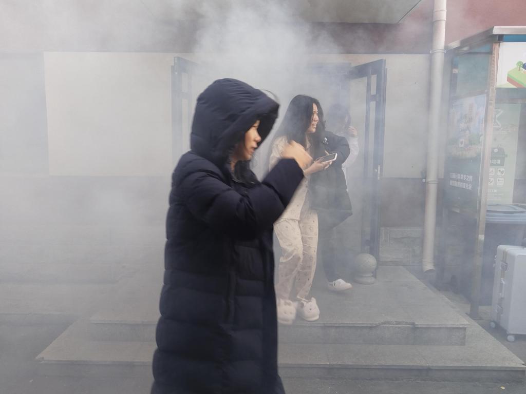 11:00,模拟火警信号启动,广播系统立即播报:“请注意,女生宿舍22号楼发生火情,请全体同学迅速按疏散路线撤离!”烟雾模拟装置同步启动,营造逼真环境。学生在宿管老师的引导下,用湿毛巾或衣物捂住口鼻,弯腰沿指定通道快速下行。各楼层学生按照“先近后远、分批分流”原则错峰撤离,避免楼梯拥堵。从警报响起至最后一名学生抵达操场集合点,用时仅4分20秒。